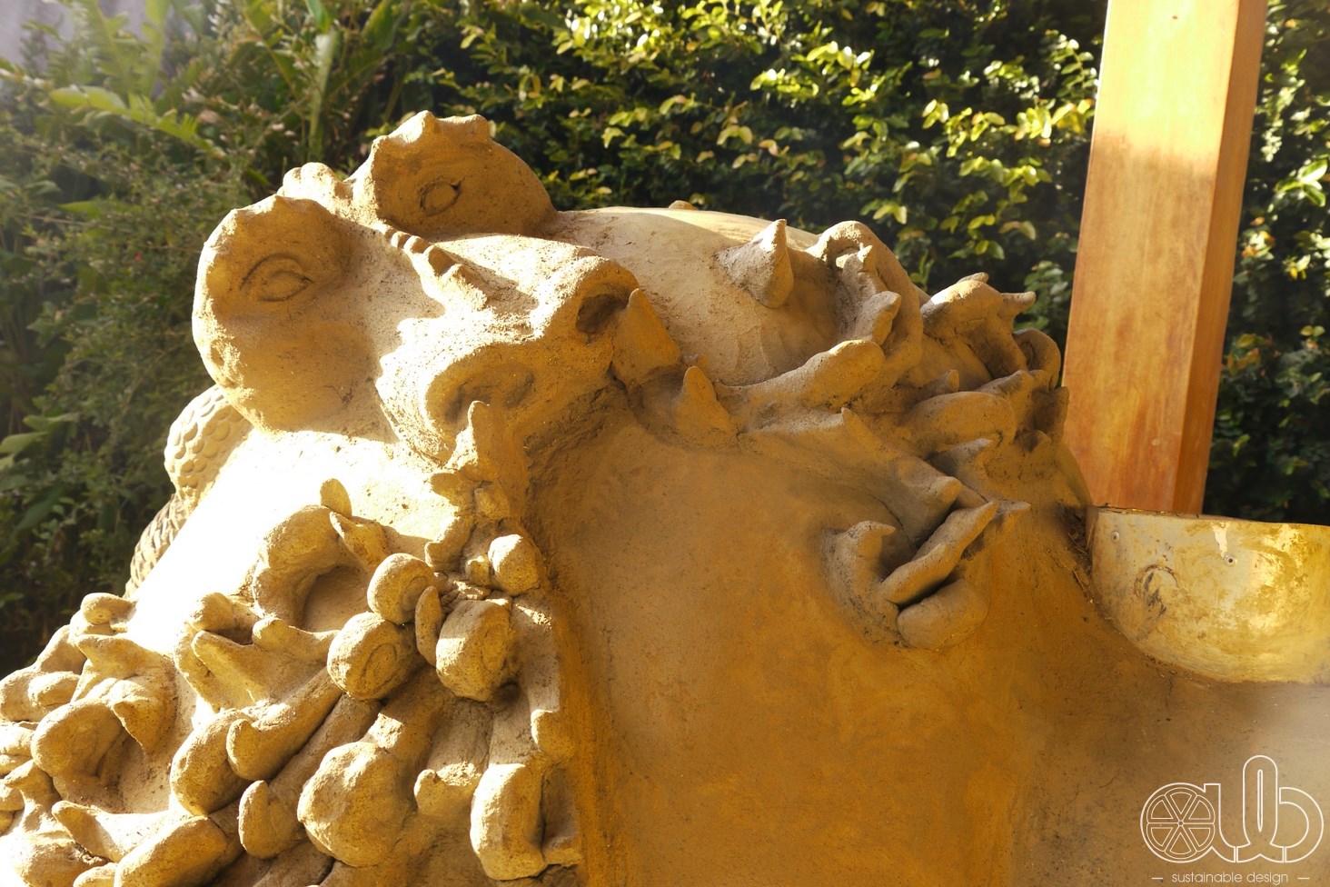 En este momento el horno cuenta esta a la mitad de su construcción, lleva las dos capas de las paredes y se esta dejando curar para ponerle ya la capa de acabado. Después se estará trabajando en el acabao de la base para que todo el diseño se integre en uno solo.