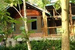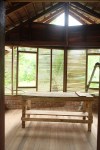 Características sostenibles: Diseño bioclimático, madera de fuentes locales, biojardinera, baño seco, iluminación natural.