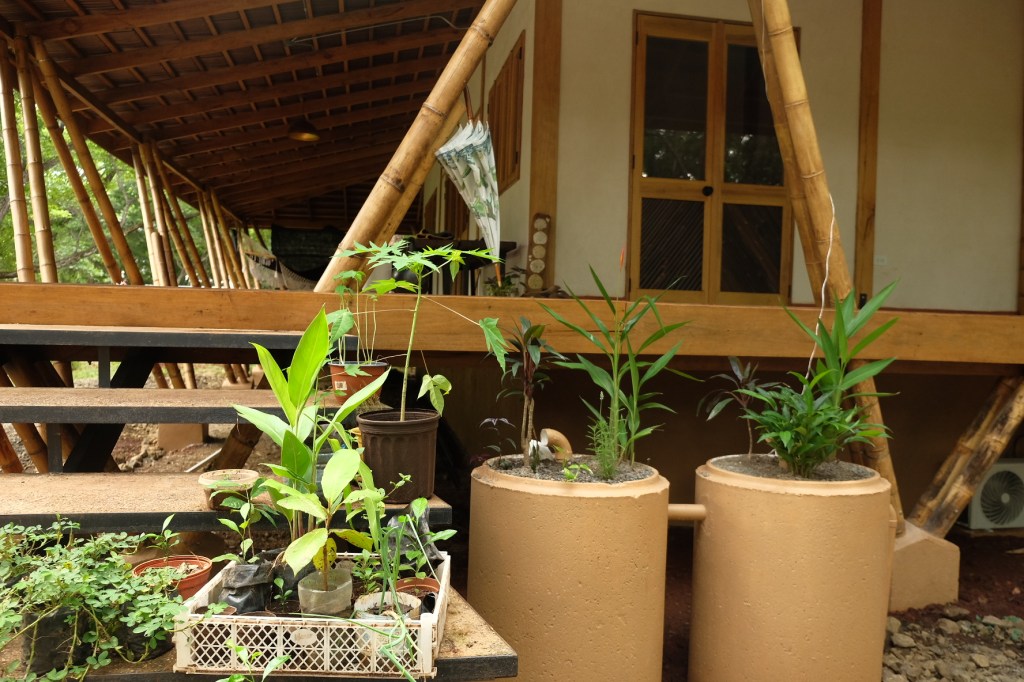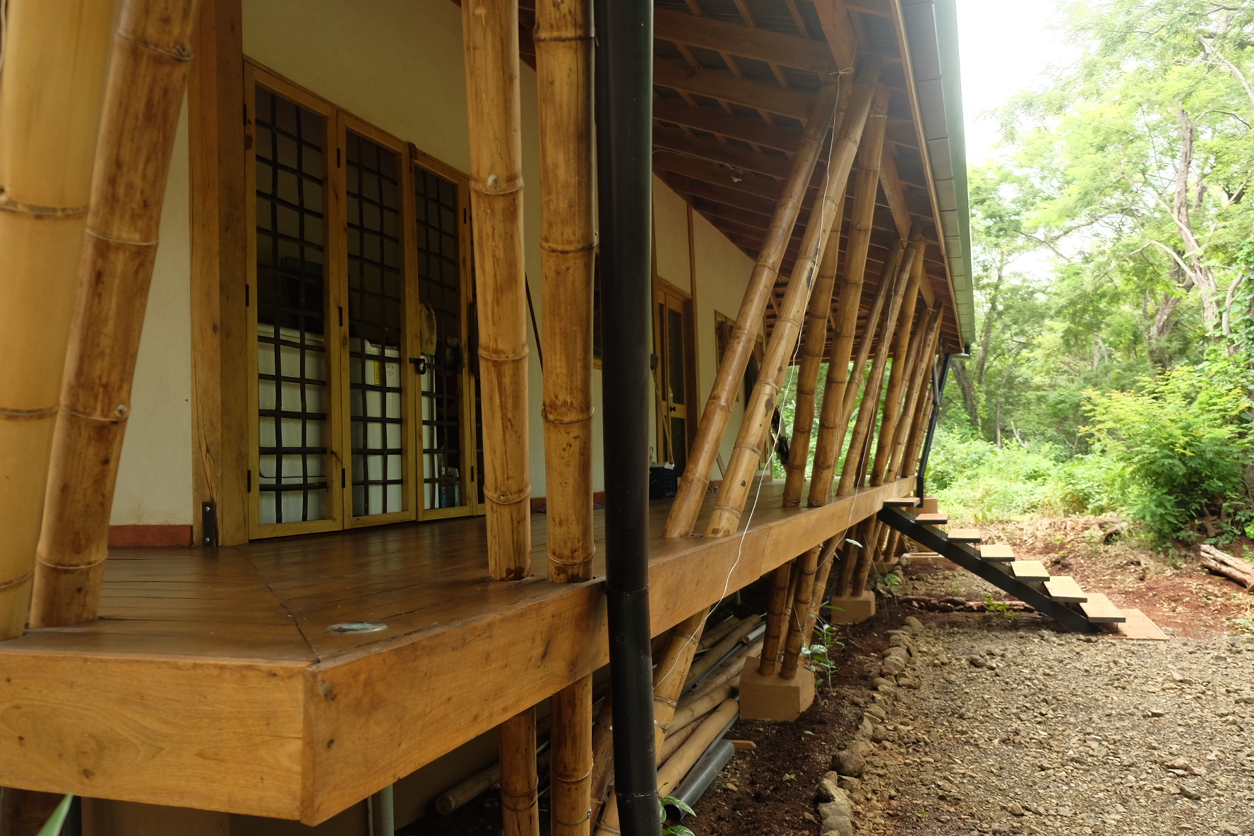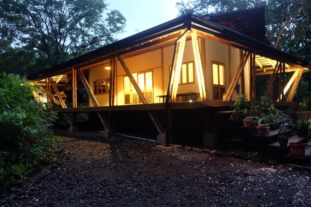 Una casa construída en la zona de Paraíso de Santa Cruz se asoma entre el bosque seco buscando que la brisa fresca proveniente de las sabanas Guanacastecas acaricie sus amplios corredores. Sus pisos y paredes de barro, altos techos, su construcción de madera y bambú recuerdan a cómo se construía hace muchos años.
